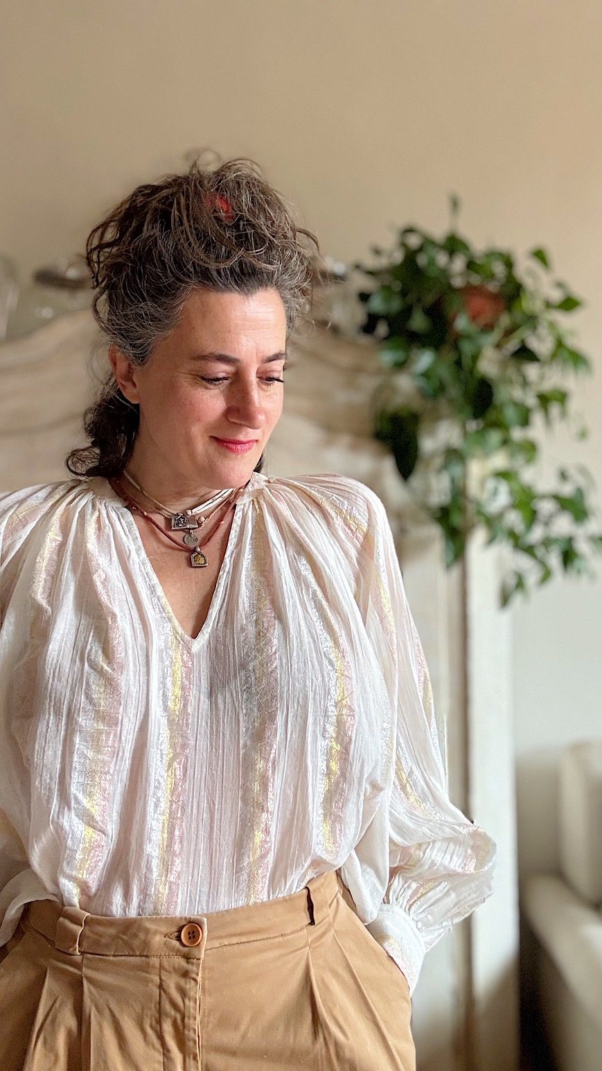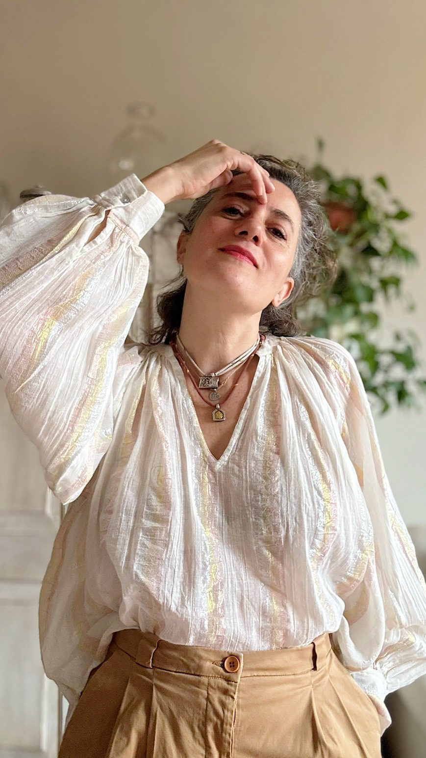 Camicia blusa Holiday in cotone e lurex